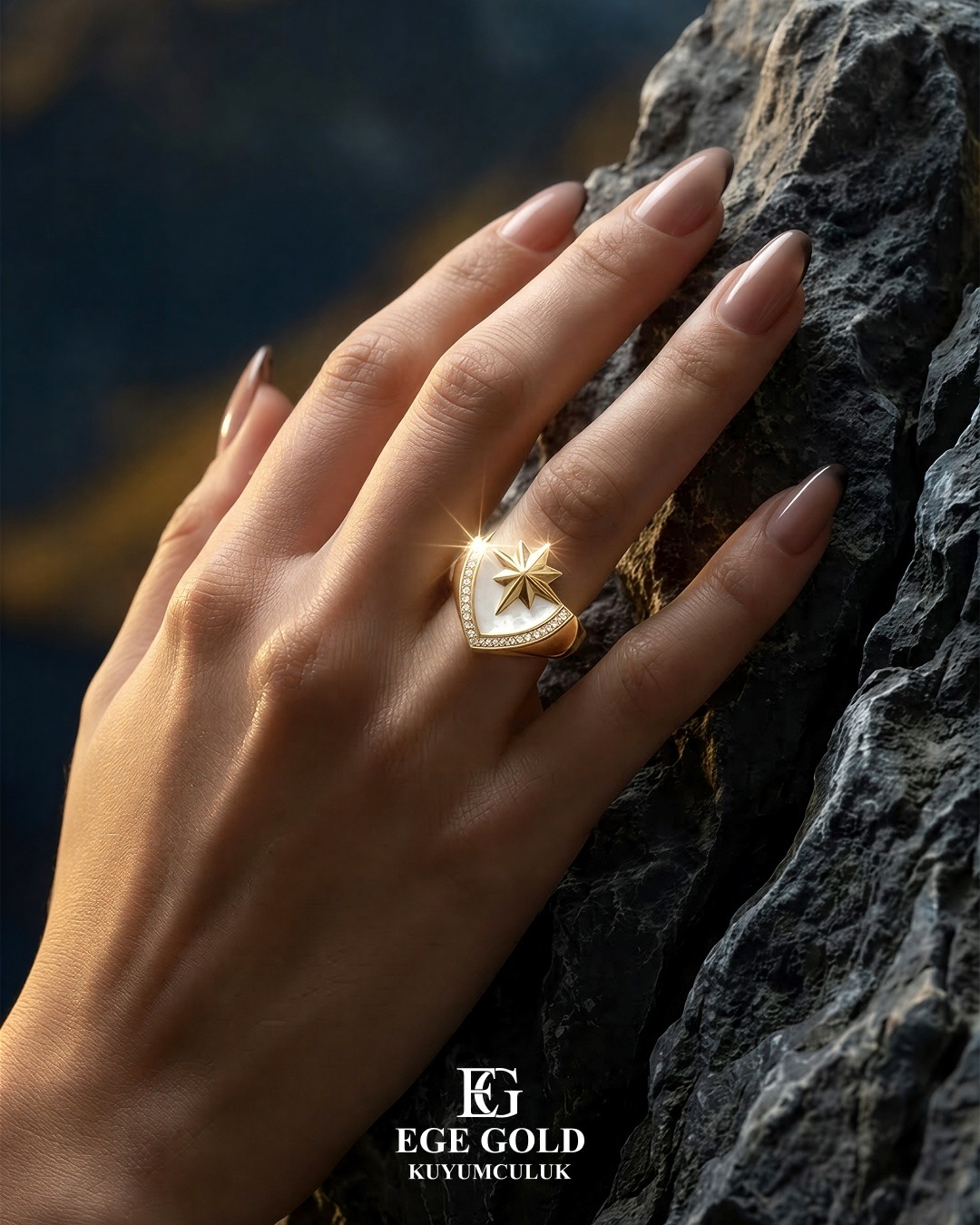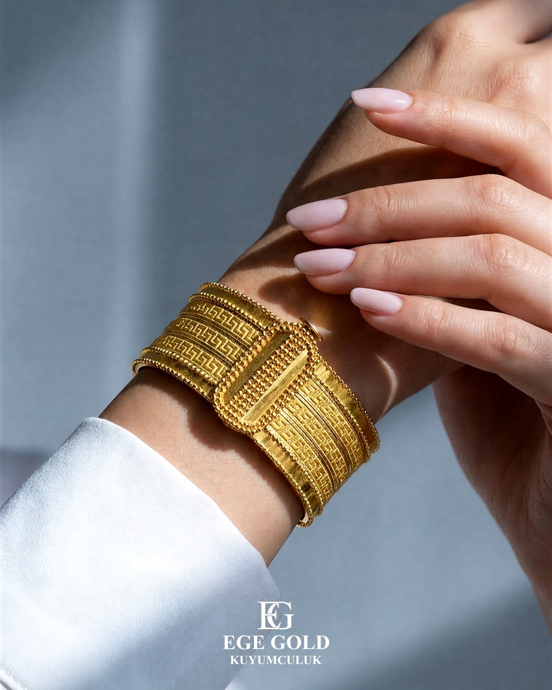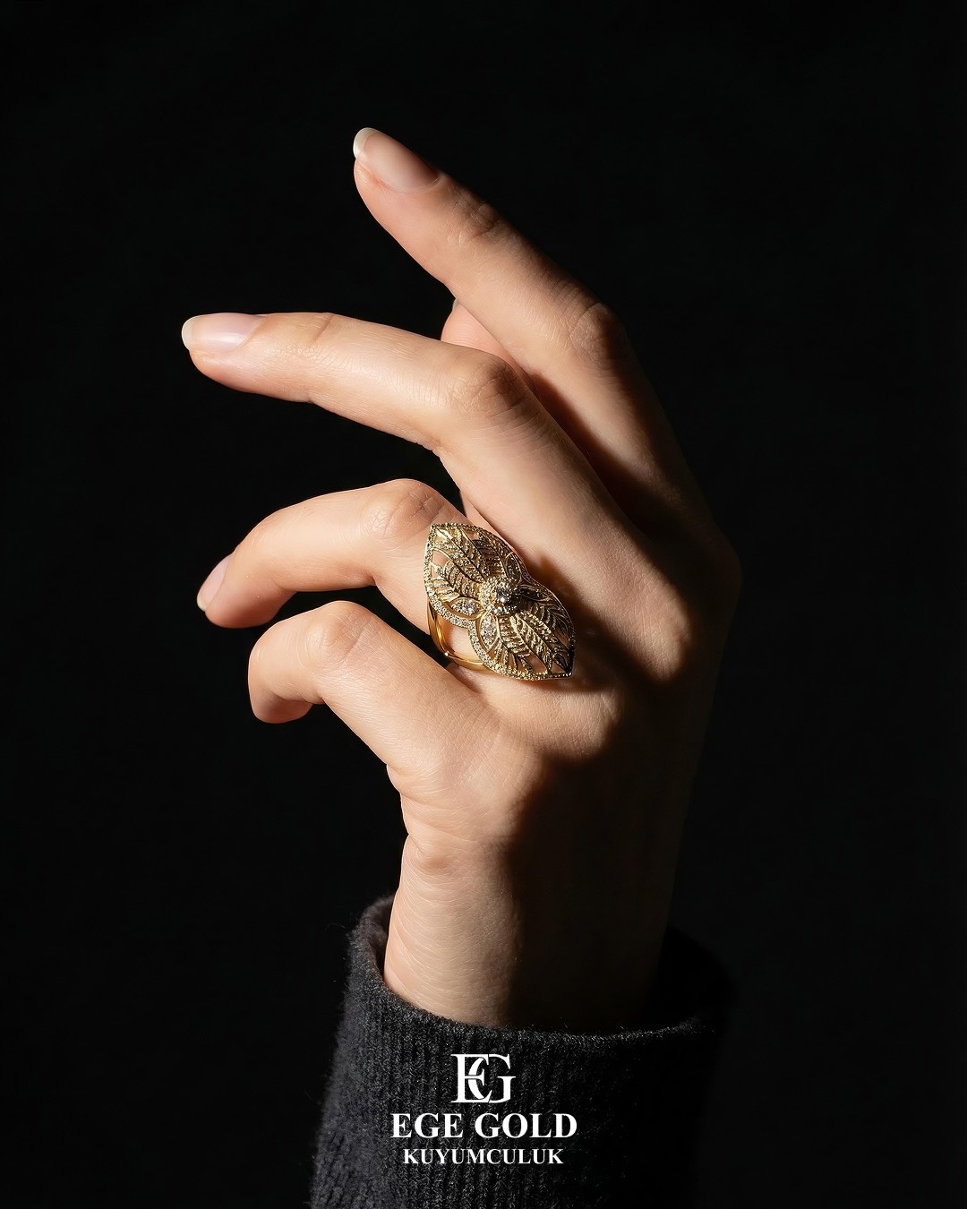 Zarafeti modern bir sahne estetiğiyle buluşturan yeni bir dijital vitrin. Ege Gold için ürünlerin değerini, ışık ve dokuya odaklanan AI destekli kompozisyonlarla yeniden yorumladık.